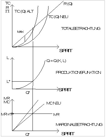 Der neue optimale Produktionsplan wir also eine gestiegene Menge an Sprit aufweisen.